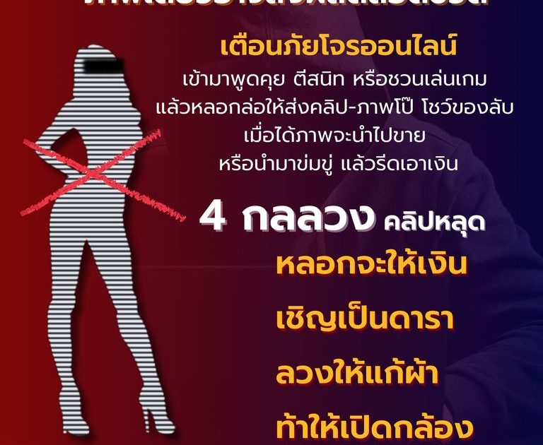 สำนักงานตำรวจแห่งชาติห่วงใยประชาชน โดยเฉพาะเยาวชน อาจตกเป็นเหยื่อโจรออนไลน์ ล่อลวงให้ส่งภาพโป๊ เพื่อนำไปขาย หรือบางรายถูกโจรนำภาพมาข่มขู่ ประจานให้อับอาย แล้วรีดไถเอาเงิน
