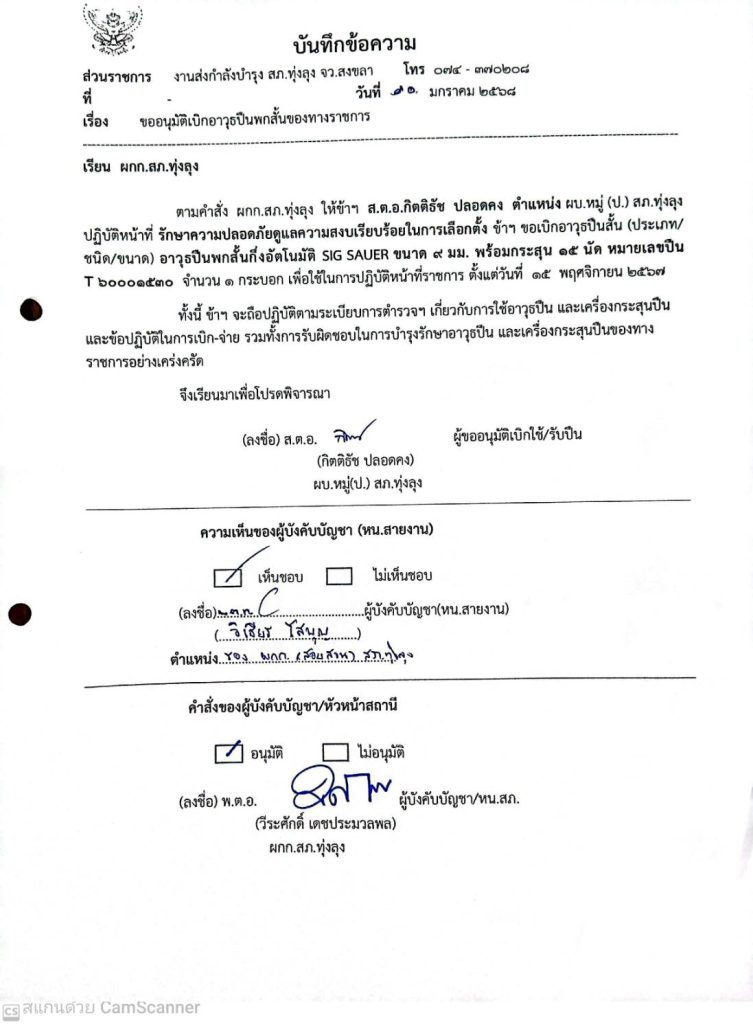 **ตรวจสอบและตรวจนับอาวุธยุทธภัณฑ์ของสถานีตำรวจเพื่อให้มีความพร้อมต่อการใช้งานในภารกิจประจำวัน**